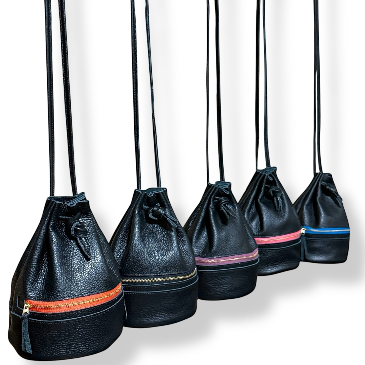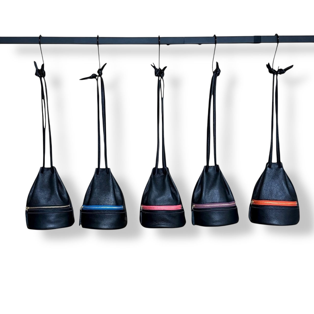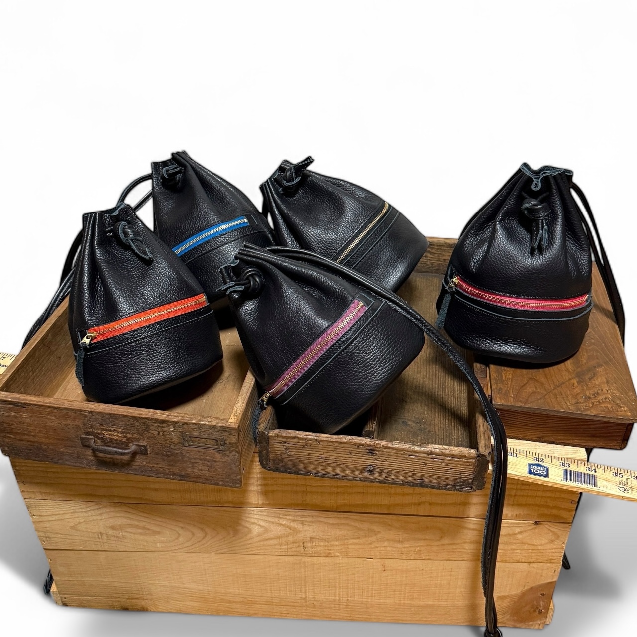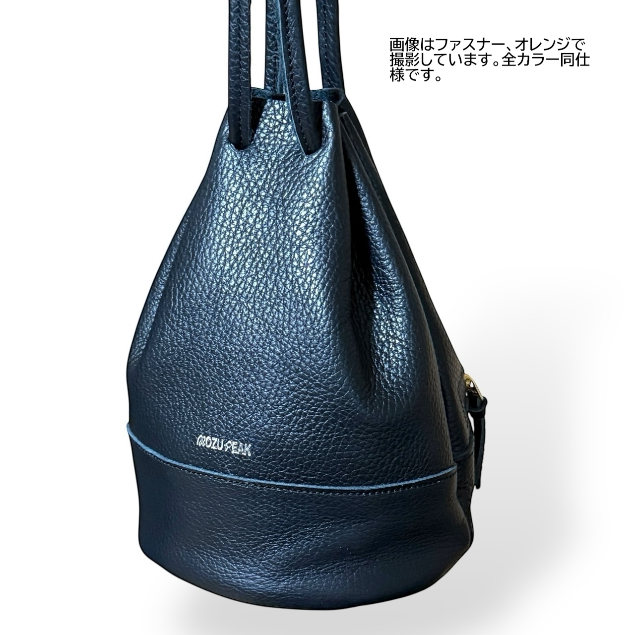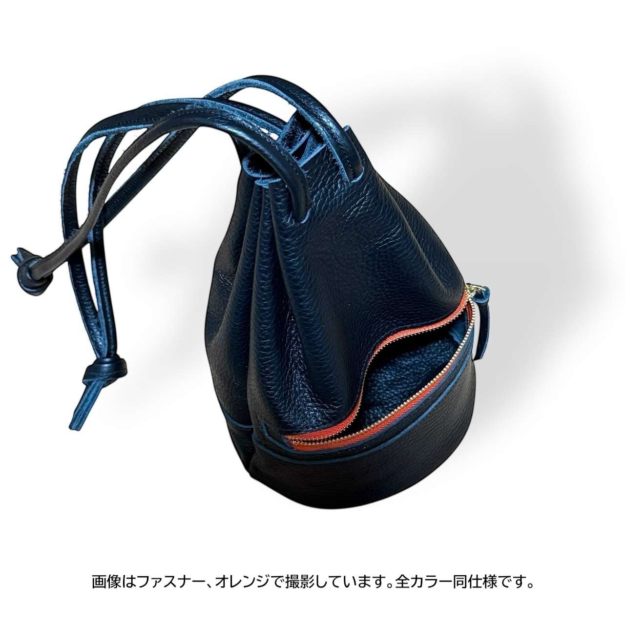 イタリア産クロームレザーの均一なシボと程よい光沢、柔らかな手触り。革紐を伸ばせばショルダー、絞れば巾着ハンドとして使える2wayミニバッグです。ファッション玄人にも響く上品な素材感と、日常での使いやすさを両立しました。